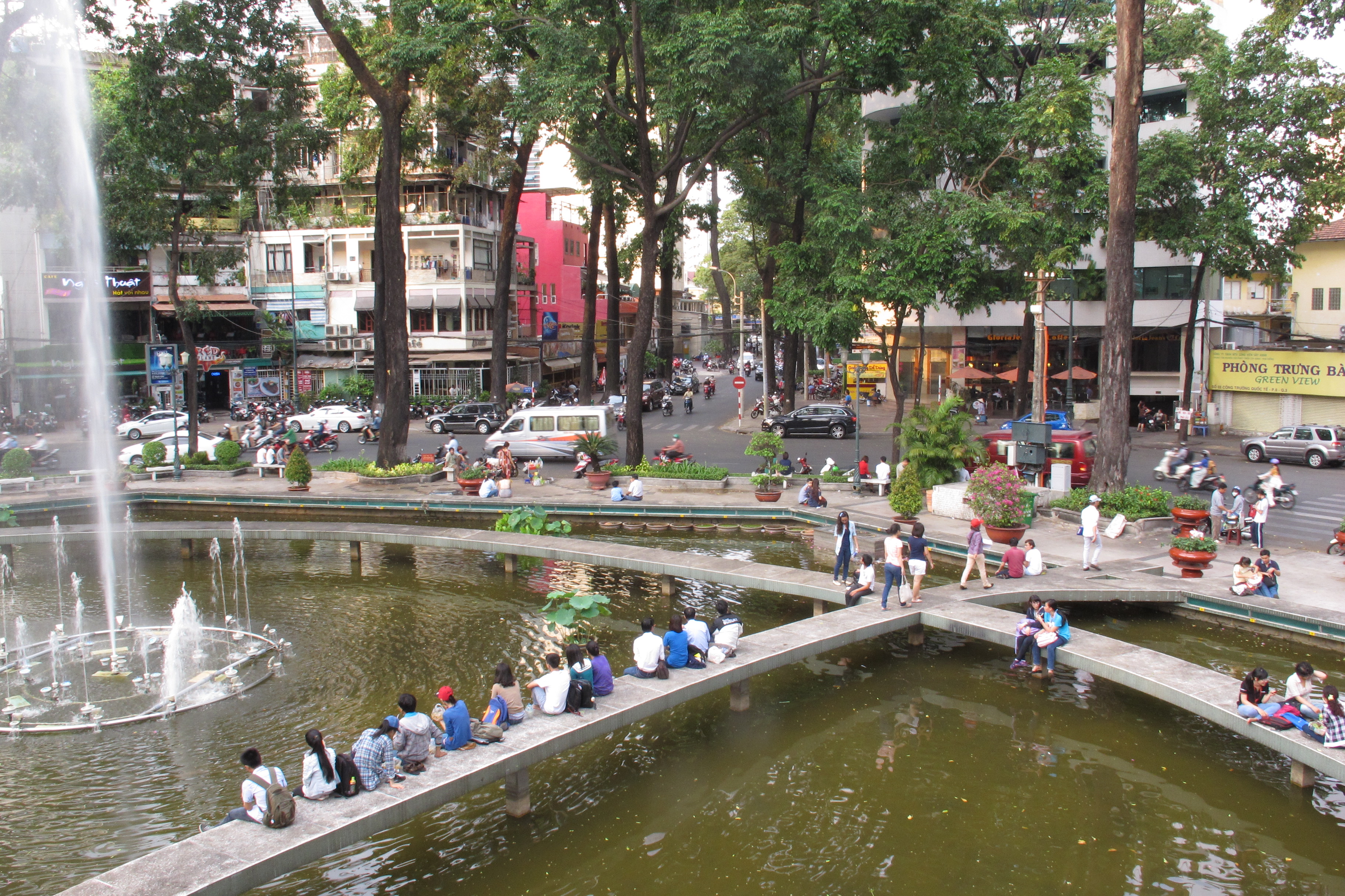 바로 앞서 설명드린 노트르담 대성당과 상당히 가까운 곳에 있습니다. 여기는 밤이 되면 커플들이 삼삼오오 모여서 앉아서 도란도란 이야기를 나누는 그런 곳으로 유명합니다. 호치민 1군 지역에 있는 대학생들이 참 많이 찾아오는 곳 같아요. 특히나 바로 옆에는 호치민 경제 대학교와 시립 건축 대학교라는 두 개의 큰 대학교가 있습니다. 현지 대학생 커플들이 많이 오는 그런 장소라고 생각해보시면 좋을 것 같습니다. 그리고 호수를 둘레로 길을 따라 길거리 음식 노점이 쭈~욱 있습니다. 믹스 라이스페이퍼, 구운 라이스페이퍼, 닭고기 달걀 등등... 길거리 음식을 사서 벤치에 앉아서 음식을 즐기기 좋습니다. 그리고 주변에 카페도 많기 때문에 전망 좋은 곳에서 커피를 즐기기에도 정말 좋습니다. 직접 보면 호수라고 하기에는 그렇게 크지가 않습니다. 인공 연못(?) 이라고 생각하면 될 것 같습니다. 외국인들에게는 여기를 Turtle Lake로 알려져 있더라구요.